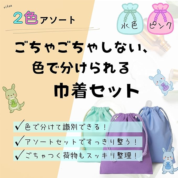 【万能な巾着袋は使い道抜群】 巾着袋 無地 は使い方いろいろ。子供 の ミニ おもちゃやコスメ、女性 の小物入れ、プレゼント ギフト 包装にも最適。小さい 巾着 は見た目以上に収納力があり、中身が見えず整理にも便利です。