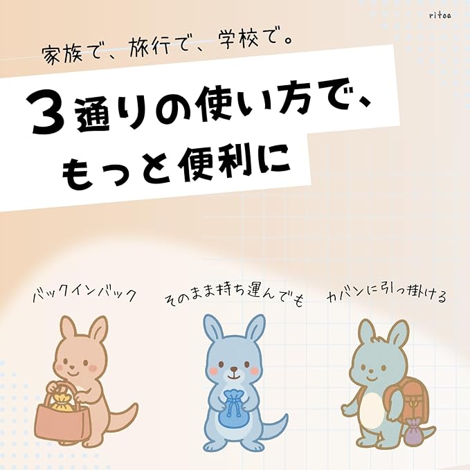 【3WAYで便利に使える】 巾着 はそのまま持ち運びにも◎。バッグインバッグ や インナーバッグ として 女性 のバッグ整理にも使いやすいサイズ感。子供 のリュックにも付けられ、ミニ 巾着 として日常的に活躍します。