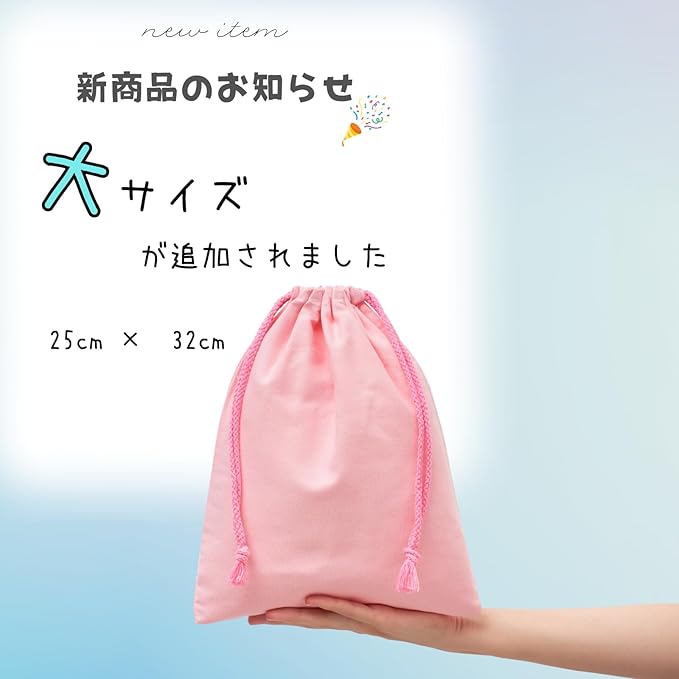 【女性や子供にぴったり】 巾着袋 無地 綿 コットン 小さくておしゃれ可愛い パステルカラーアソートですっきり整理 (大サイズ【25cm 32cm】2個セット)