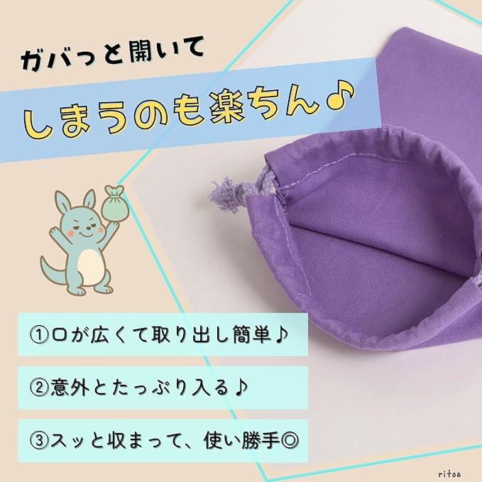 【 巾着袋だから口が大きく取り出しやすい、しまいやすい】 大きく開く 巾着袋 は、小物の出し入れがラクラク。コットン 布 だからやさしくフィットし、毎日の使い勝手抜群。小さい 巾着 なのでバッグやポーチにも収まりやすく、女性 や 子供 の必需品におすすめ。