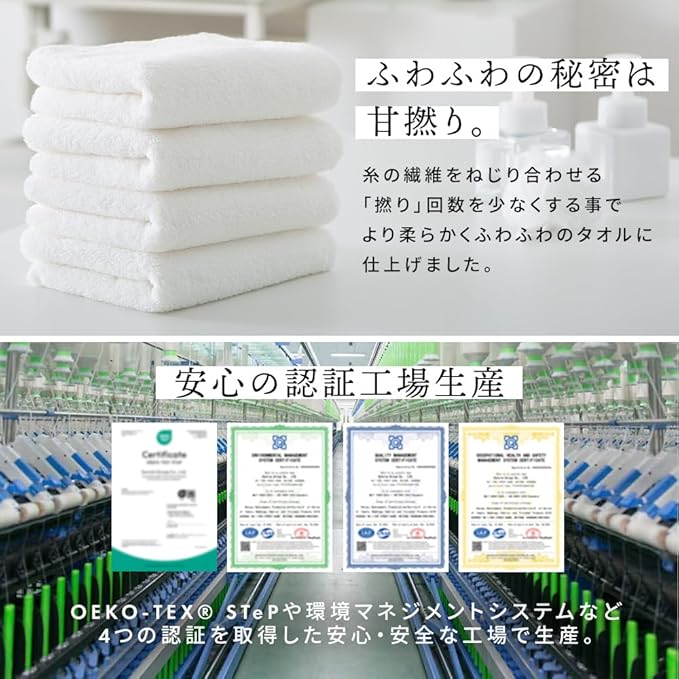 ふんわりとしたボリューム感と、優れた吸水性を兼ね備えたタオル。
