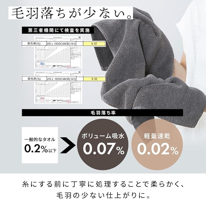 綿とポリエステルを混合させるているから、吸水性を保ちながらも速乾性を実現。