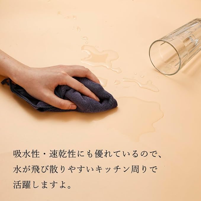 厚手生地で吸水性に優れる ! 吸水性・速乾性にも優れているので、水が飛び散りやすいキッチン周りで活躍しますよ。