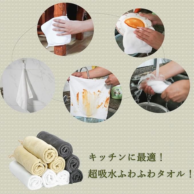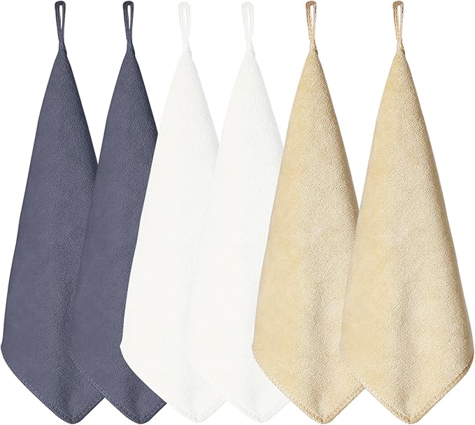[HOOMCOOM] キッチンタオル キッチンクロス ループ付き 手拭きタオル マイクロファイバー 厚手生地 吸水 速乾 6枚セット 30x30cm 防臭 衛生 抗菌