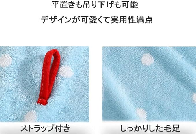 このループ付きタオルは、日々の生活に楽しさと快適さをプラスする機能性アイテムです。独自の傘をモチーフにしたデザインが最大の特徴で、広げると美しい円形になり、吊るすと愛らしい傘のシルエットが浮かび上がります。高品質な珊瑚絨素材を採用しているため、驚くほどの吸水力と、肌に優しい極上の柔らかさを兼ね備えています。付属のループにより、使用後は簡単に吊るして収納でき、清潔で衛生的な状態を保つのに役立ちます。明るいブルーカラーが空間を爽やかに彩り、キッチン、洗面所、バスルームなど、さまざまなシーンでご利用いただけます。実用的でありながらも、おしゃれなデザインが、毎日のお手入れをより楽しい時間に変えるでしょう。
