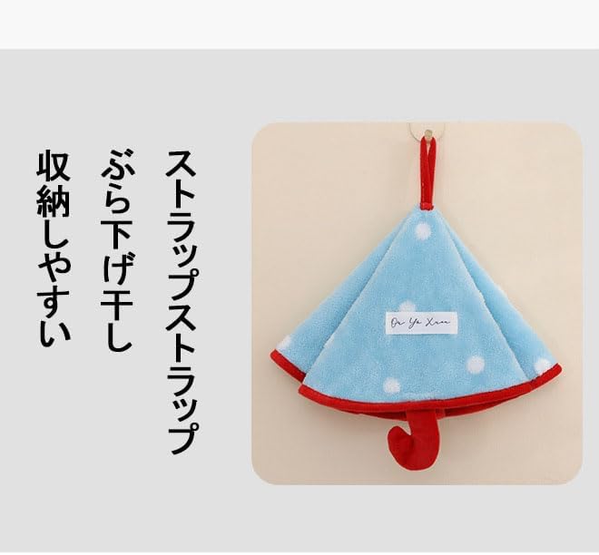 ループ付きタオル 珊瑚絨 ブルー 傘 モチーフ デザイン 丸く広がる 吊り下げ 便利 紐付きタオル ループタオ ル 吸水 速乾 厚手 柔らかい 肌触り 優しい キッチン バスルーム 洗面所 おしゃれ 趣味 アイテム コンパクト 収納
