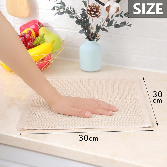 ・軽量で通気性が良く、吸水性にも優れています。お料理中の水滴や油汚れをしっかりキャッチし、すぐに乾くので、キッチンをいつでも清潔に保ちます。