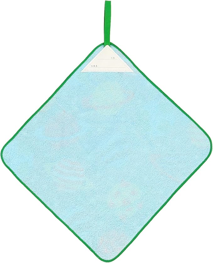 フックに引っかけられる便利なループ付きタオル。お名前が書けるネーム付き