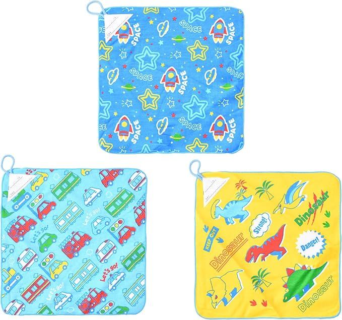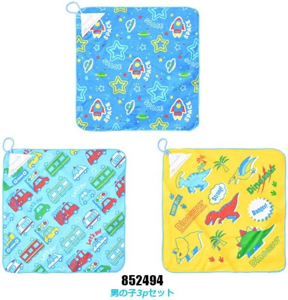 ループタオル タオル 3枚セット 保育園 幼稚園 小学校 ハンカチ キッズ 子供 幼児 男の子 女の子 名前が書ける ハンドタオル お名前タグ付き ループ付き 30 30 正方形 ユニコーン 車 ループタオル3枚セット 【852494】男の子