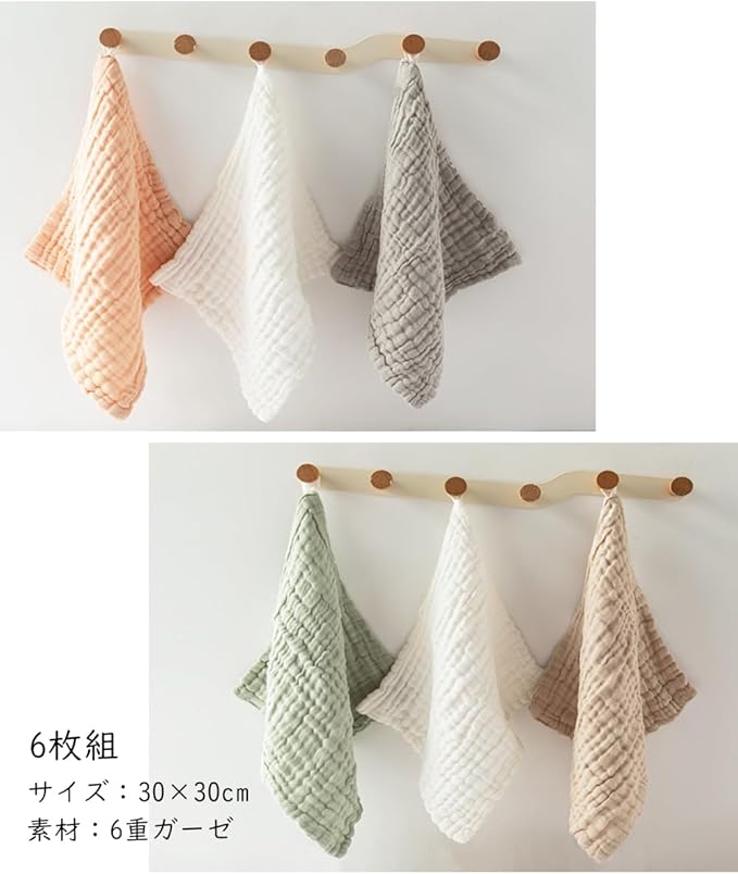 素材: 綿100%(100%天然素材) 6重ガーゼ サイズ:30 30cm ※伸縮性があるガーゼ(Washed Gauze)素材を採用するため、サイズは 1~2cmの場合もございますので、ご了承ください。