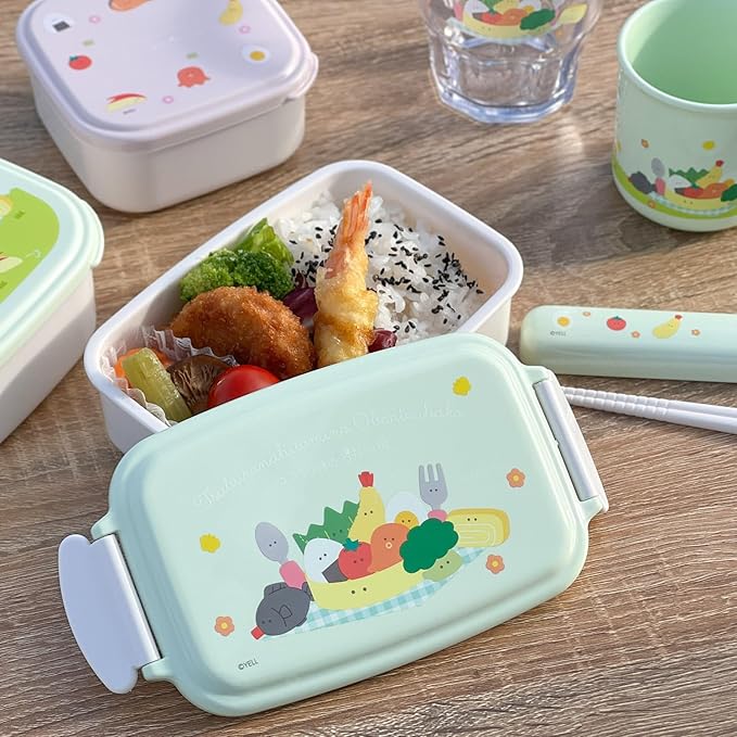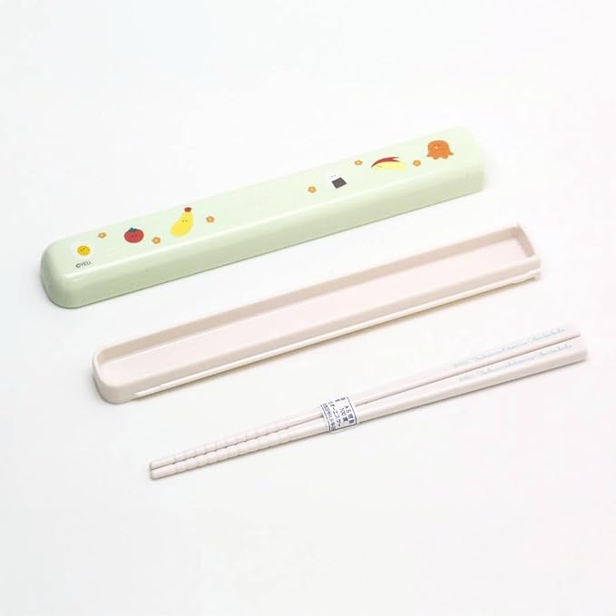 OSK(オーエスケー) つぶらな瞳のお弁当箱 引フタ箸箱セット 16.5cm 日本製 食洗機対応 スライド式 滑り止め加工 抗菌 おしゃれ 可愛い カトラリー 男女兼用 子供用 大人用 学生 HS-11