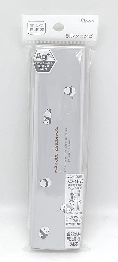 OSK(オーエスケー) カトラリーセット ぱんだ 引きフタコンビ 箸 18cm スプーン 日本製 食洗機対応 抗菌 かわいい おしゃれ 男女兼用 大人用 子供用 学生 CT-27