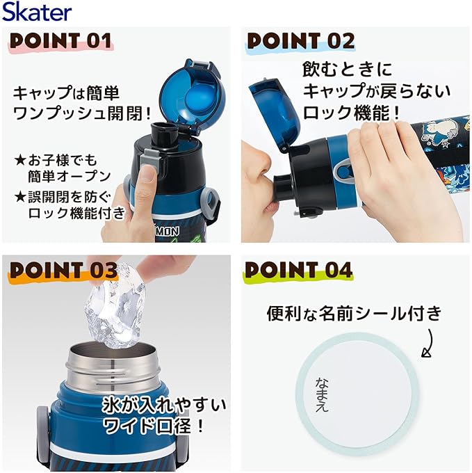スケーター(Skater) 水筒 子供用 直飲み 470ml ポケモン 25 男の子 保冷専用 ステンレス 軽量タイプ waterbottle スポーツボトル キッズ こども 水瓶 SDC4-A