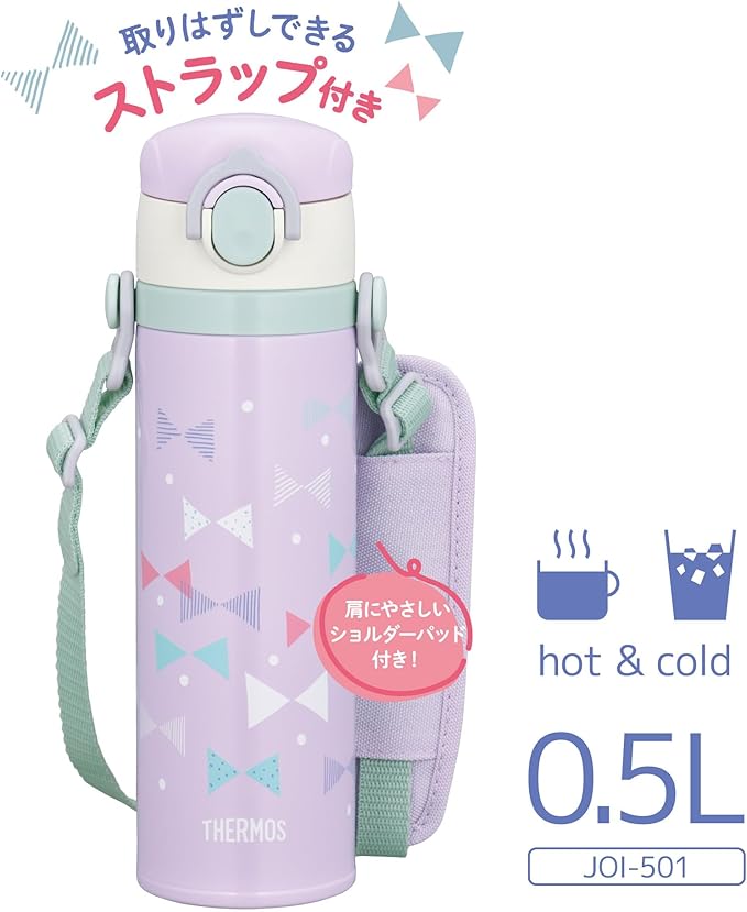 サーモス 水筒 真空断熱キッズケータイマグ 500ml パステルパープル 取りはずしできるストラップ 肩に優しいショルダーパット付き 子供用 通園通学 JOI-501 PPL