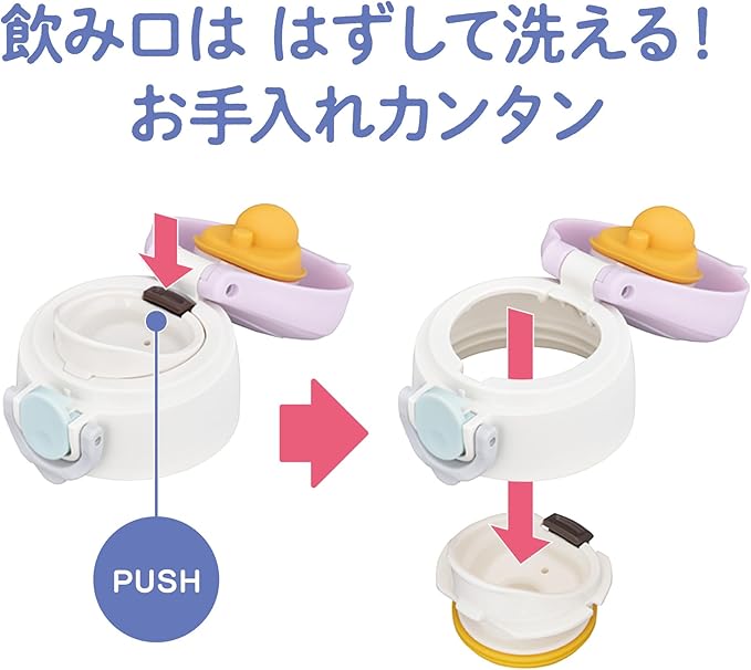 素材・材質:内びん:ステンレス鋼 / 胴部:ステンレス鋼(アクリル樹脂塗装) / フタ・せん本体・飲み口:ポリプロピレン / フタパッキン・せんパッキン:シリコーンゴム