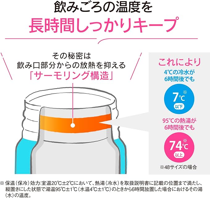 象印 水筒 480ml 【洗いやすく進化】 食洗機対応 シームレスせん 洗う点数2点のみ 軽量&コンパクト 保冷・保温 ワンタッチマグ コクーンホワイト SU-BA48-WM