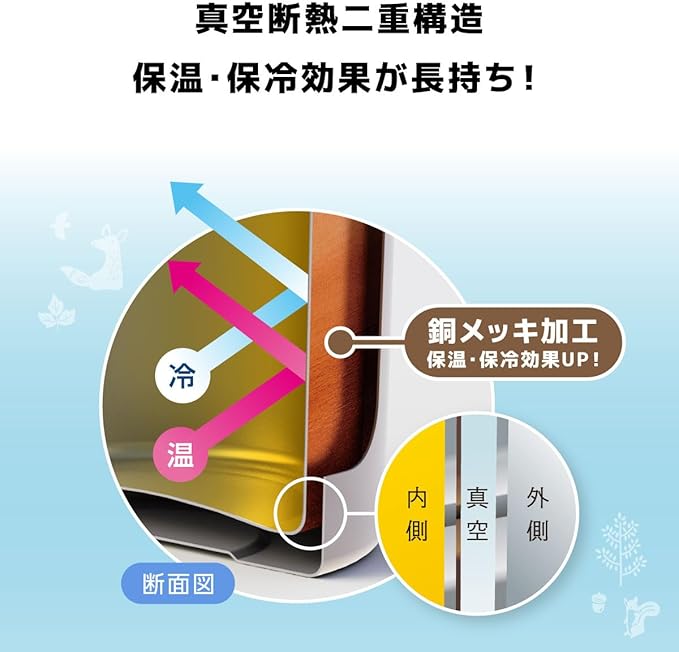 【保温効力】コップ付きボトル:保温効力:69度以上(6時間)
