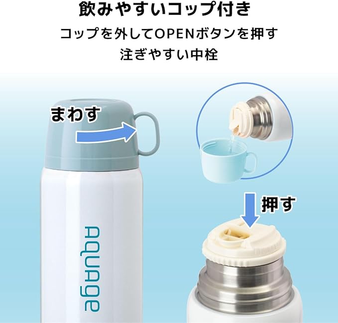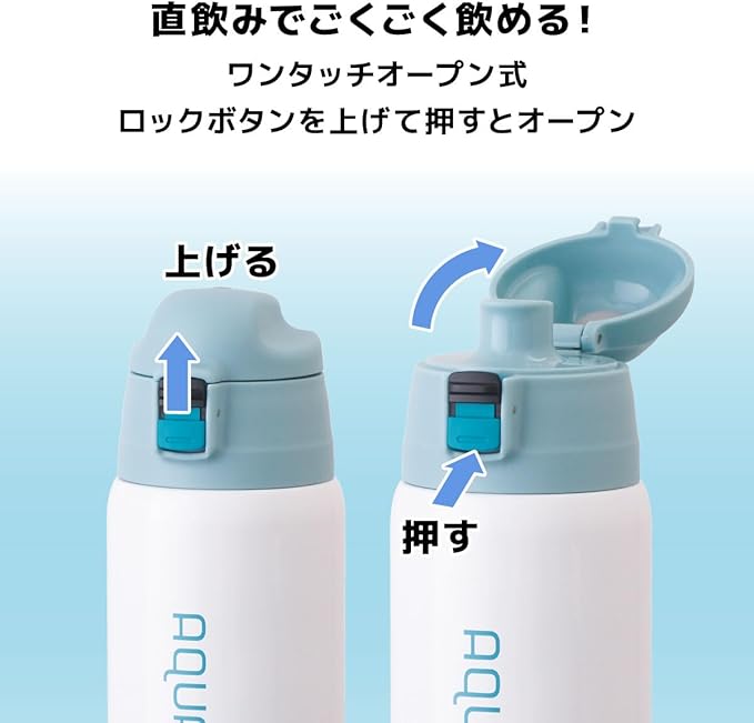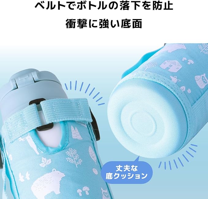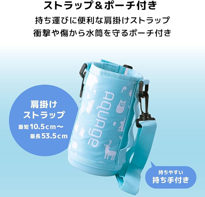 アトラス 水筒 670ml 620ml 保温 保冷 軽量 子ども キッズ 直飲み コップ付 2WAY カバー付き 紐付き ターコイズ アクアージュ ANW-601TQ