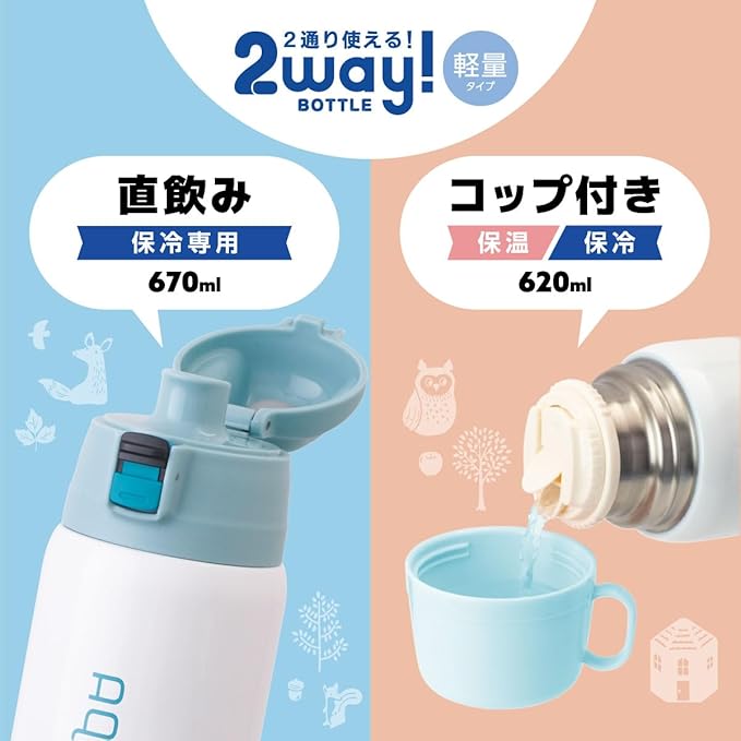 【容量(約)】ダイレクトボトル:670ml / コップ付きボトル:620ml