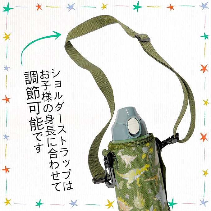 直飲みタイプなので、ワンタッチですぐに飲むことができます。セットのポーチには斜めがけできるストラップがついているので、小さなお子様でも持ち運びに便利です。