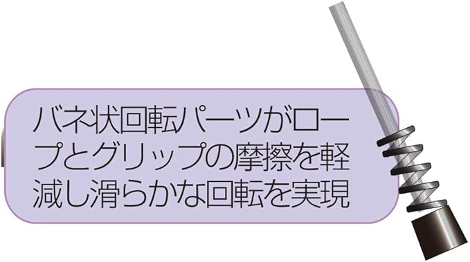 【仕様2】バネ状回転パーツがロープとグリップの摩擦を軽減し滑らかな回転を実現
