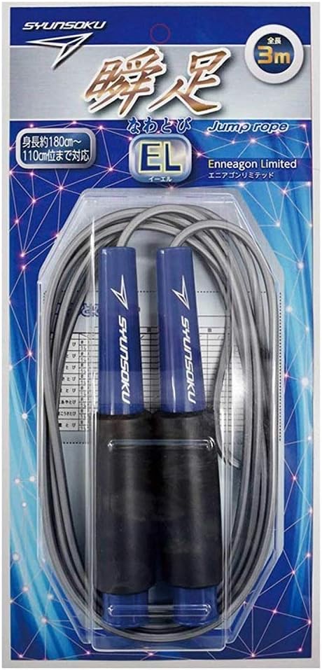 【特長】九面体ロープが軽快な風切り音を起こしリズミカルに跳べる縄跳び。身長180cm~110cmまで対応し、大人のトレーニングにも最適