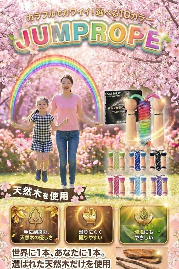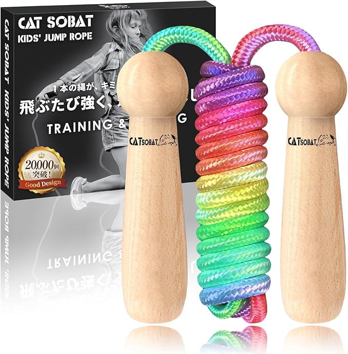 【上質仕上げ天然木デザイン】 縄跳び 子供用 幼児用 小学校 保育園 なわとび教室 ロープ長さ調整可 かわいい木製デザイン【HOT30日保証付き】