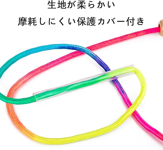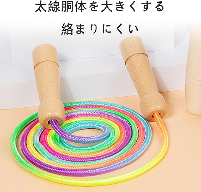 縄跳び 2.5m 子供 ロープ 跳びやすい 調節可能な大縄跳び 木柄 運動会 虹色のロープ カラフル ジャンプロープ なわとび トレーニング用 競技用 体育の授業