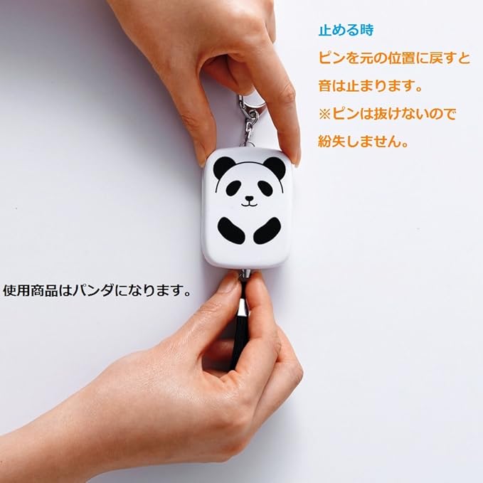 【使い方】鳴らす時:ブザーピンを下に引っ張る/止める時:ピンを元に戻す。