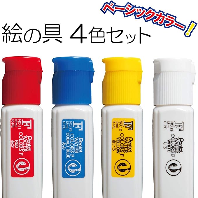 ぺんてる 絵の具4色セット 赤 青 黄 白 各1個 AMZ-WFCT-4A