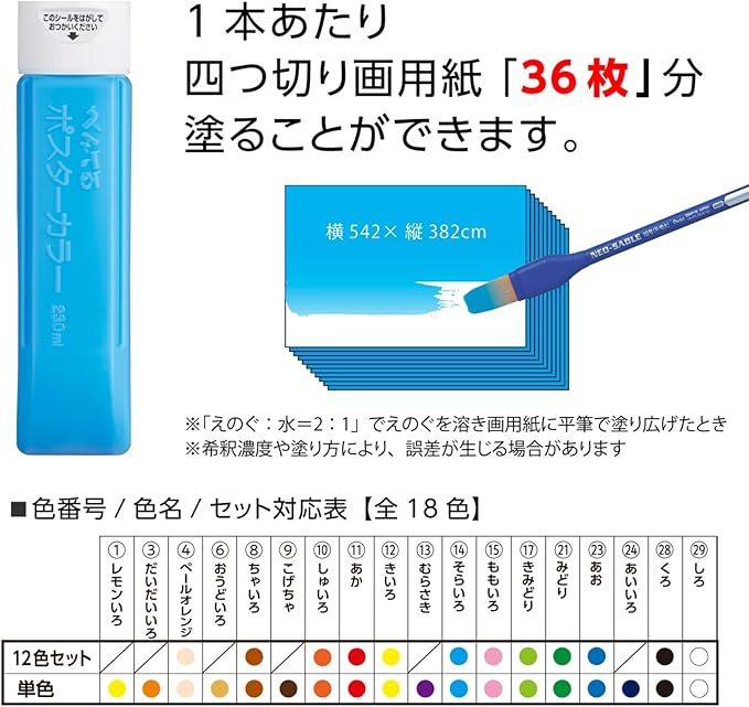 グループ制作に最適な230mlの太チューブ入り。単色全18色。