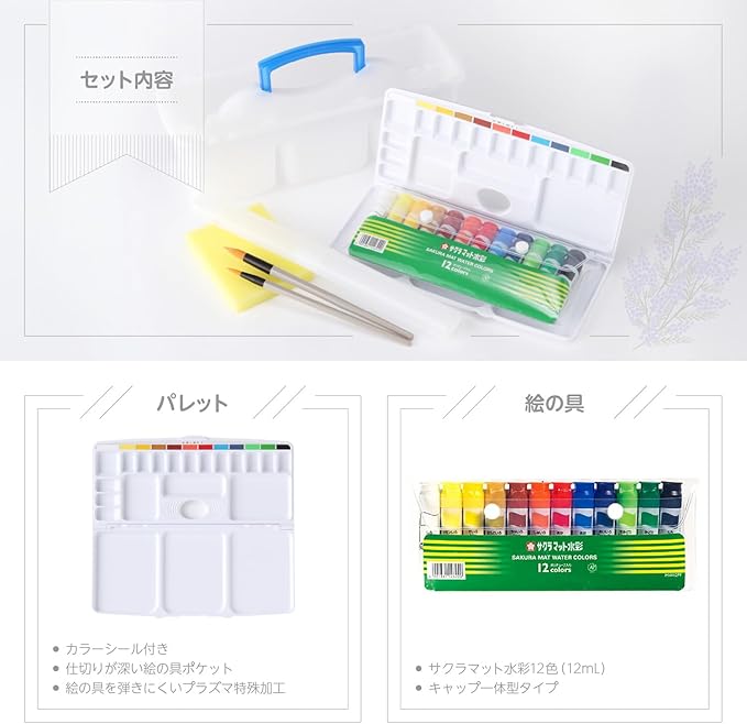 ●サクラマット水彩絵の具12mLの12色セット。