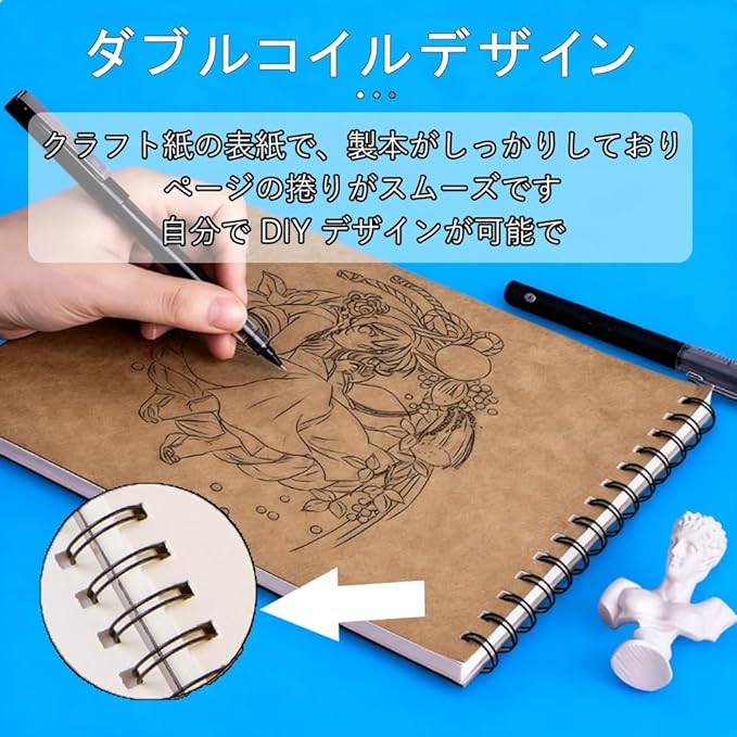 【厚紙カバー 使い勝手良い】硬くしっかりした厚紙カバーで、片手で支えてスケッチしたり、力強く書き込んだりすることに対応可能です。