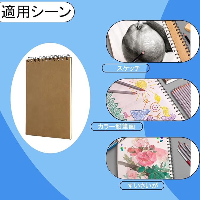 スケッチブック A4 サイズ 厚口画用紙 縦開き 1 冊 30 枚(29cm 21cm) 中性紙素材 油性 水彩色鉛筆対応 大人 子供用 素描 落書き 野外スケッチに適す 学校 旅行携帯可能 画材プレゼントに最適
