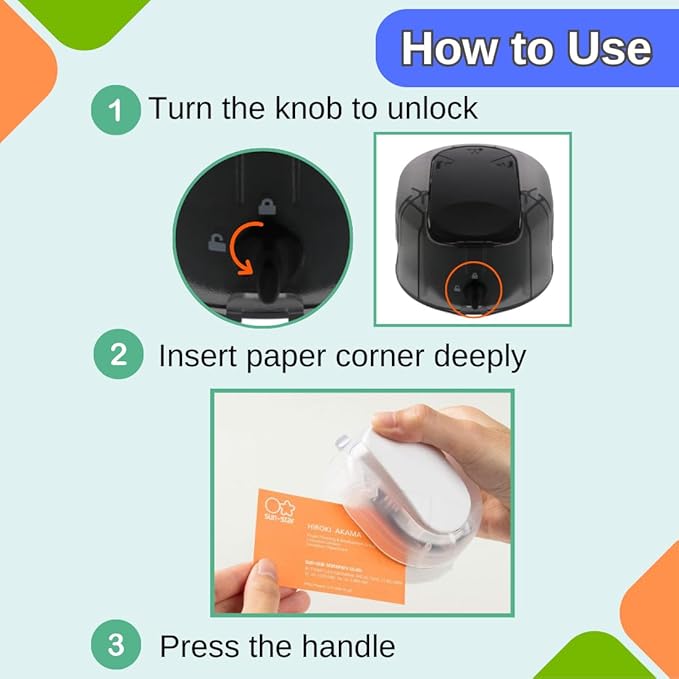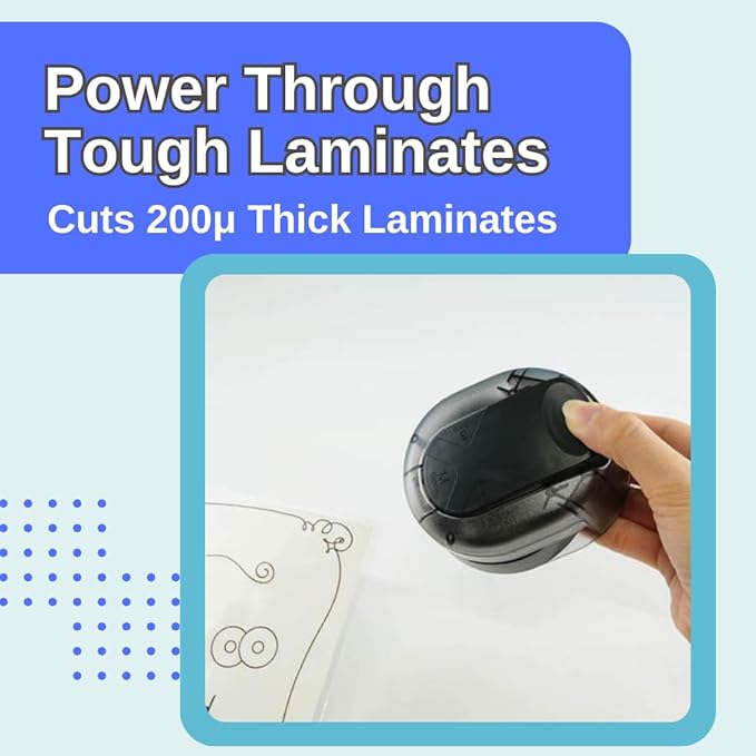3・厚口ラミネートも切れる : 独自のスライドカット構造で、一般のクラフトパンチでは切れない200μのラミネートフィルムも楽に切ることが可能