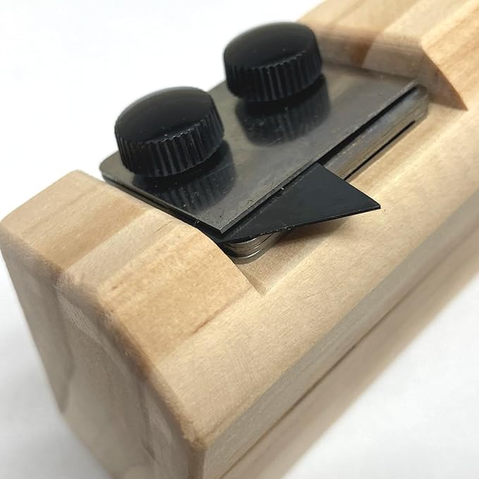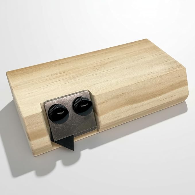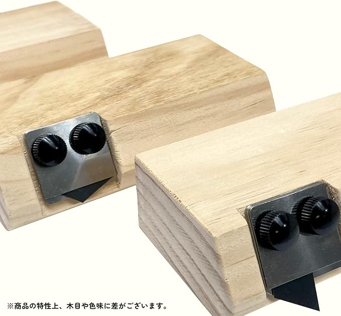 持ち手をカットしローコストを実現したクッションフロア用カッターです。 クッションフロアの厚みにより刃の位置の調整が可能です。(1.8㎜、2.3㎜、3.0㎜) 刃は市販のL型刃の折れ線2ヶ分を折ってご使用ください。 ※木材は模様などが多少入っておりますが製品の使用上に問題はございません。 ※特性上、色や木目に多少の差がございます。