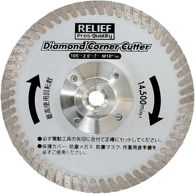 用途:鉄筋入りコンクリート・ブロック・レンガ・コンクリート製品、御影石などの通常の切断、及びコーナーの加工に。