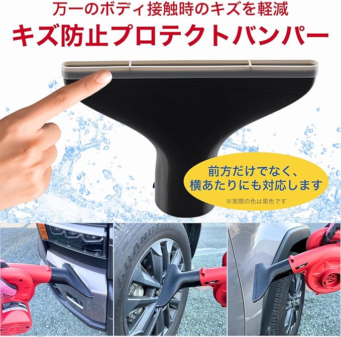 【キズ防止プロテクトバンパー】ノズル先端にキズ防止バンパーを搭載。前方・横方向の接触にも対応し、万一のボディ接触時のキズを軽減します。