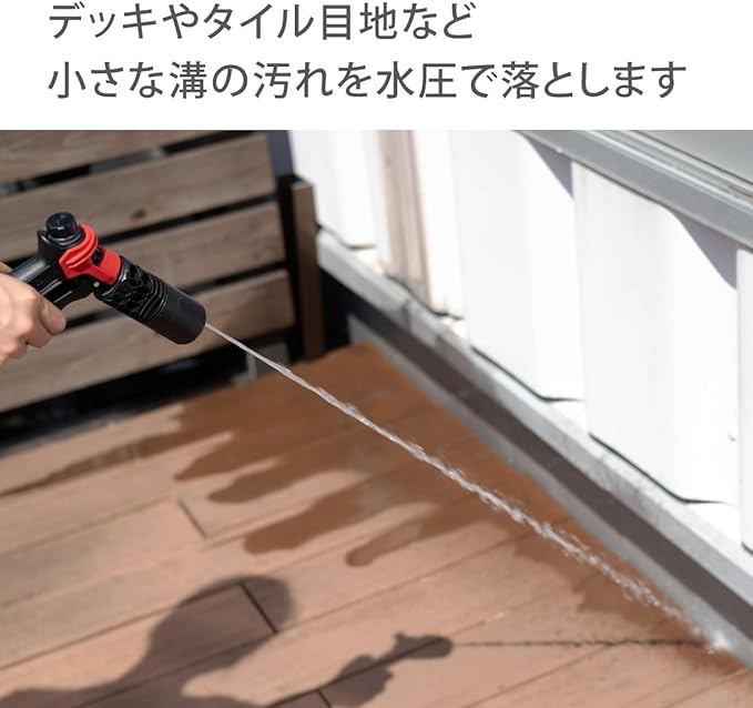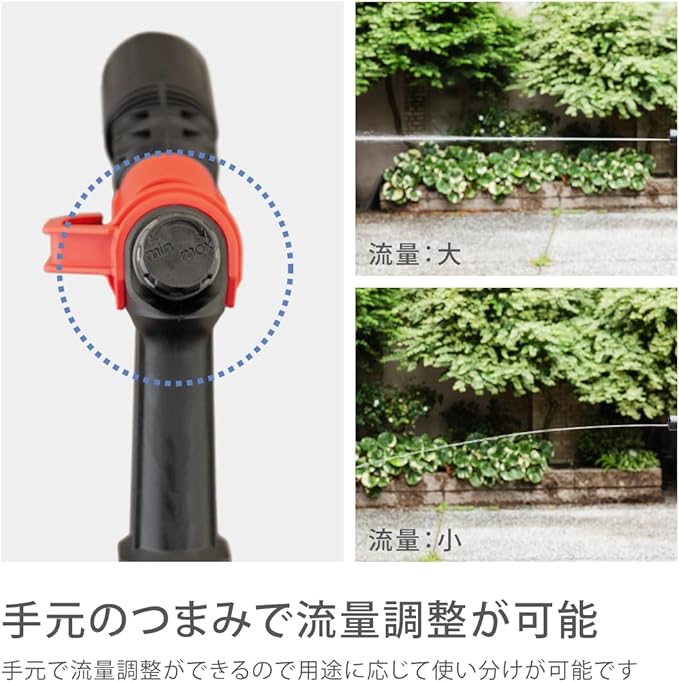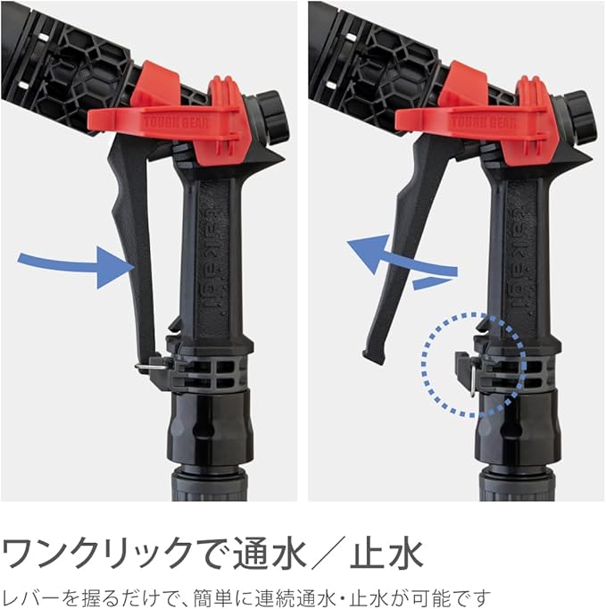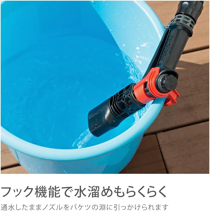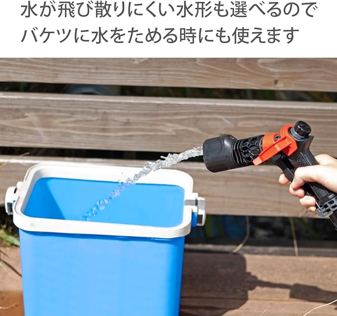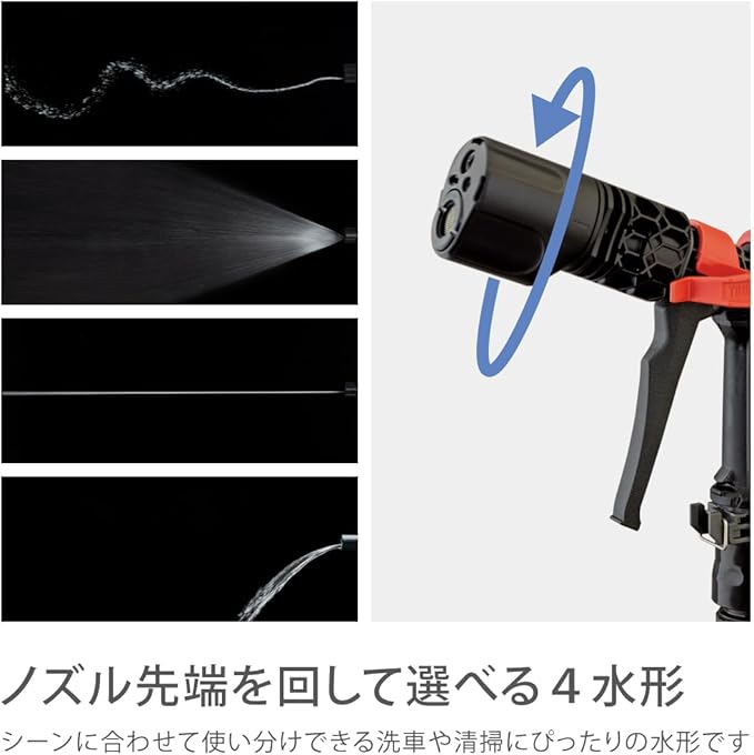 ●4水形の洗車・清掃向けの散水ノズルです。●つまみを回すことで流量調整が可能です。●赤いフック部分はバケツに引っかけられる仕様になっています。●2022年グッドデザイン賞にて受賞しました。