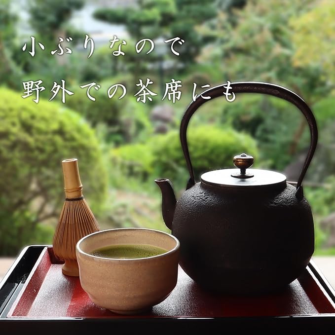 ①【持ち運びしやすいサイズ感】直径約10.1cm、高さ約6.5cmと、野外での茶席に最適なコンパクト設計。バッグにも入れやすく、気軽に持ち出せます。