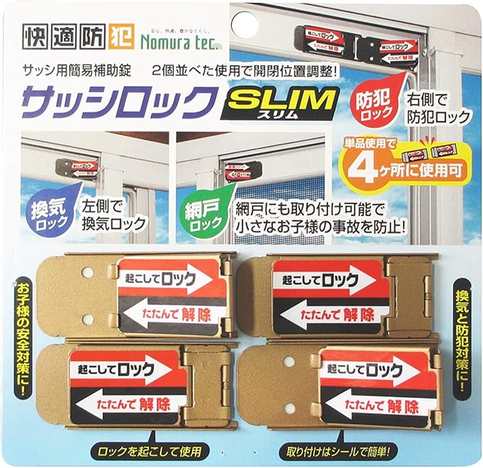 ノムラテック 窓周りの防犯グッズ ブロンズ 横5.8 縦2.5 厚み0.3cm サッシロック スリム N-1115 4個入り