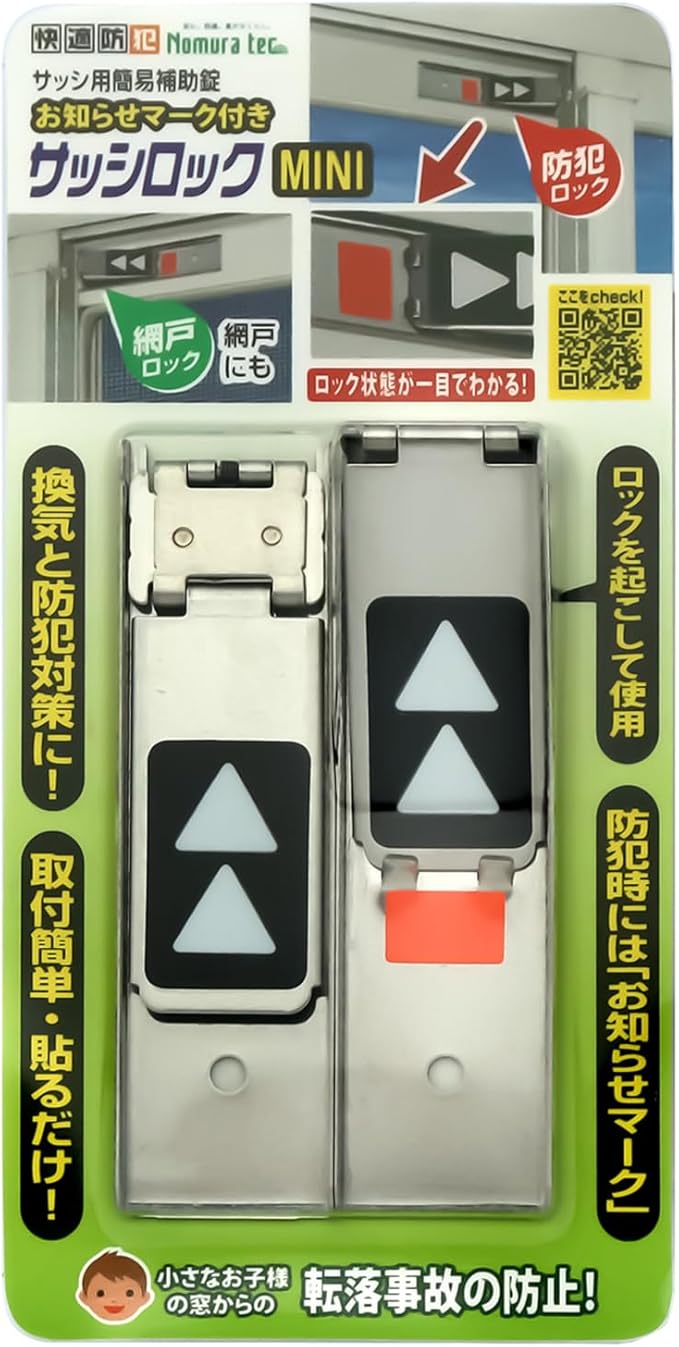 ロック状態が一目でわかる、お知らせマーク付きのサッシ用簡易補助錠
