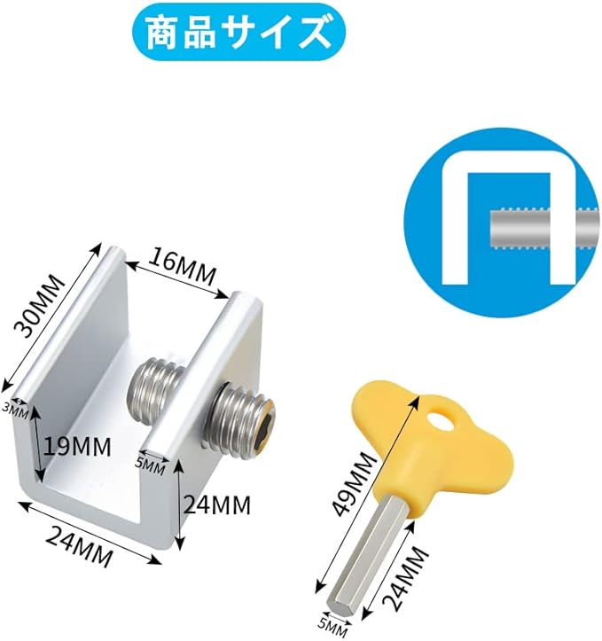 【取り付け簡単】窓の穴を開ける必要はありません。六角ネジが付いていますので、ロックしたい場所に固定し、適切な位置を見つけたら、ネジを締めて取り付けたら完成です。
