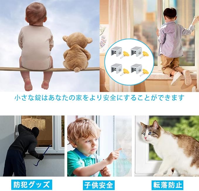 【4個セット】4つの窓ロックと六角ネジが含めていて、窓の鍵*4、保護プレート*4。大家族のニーズを十分に満たすことができます。