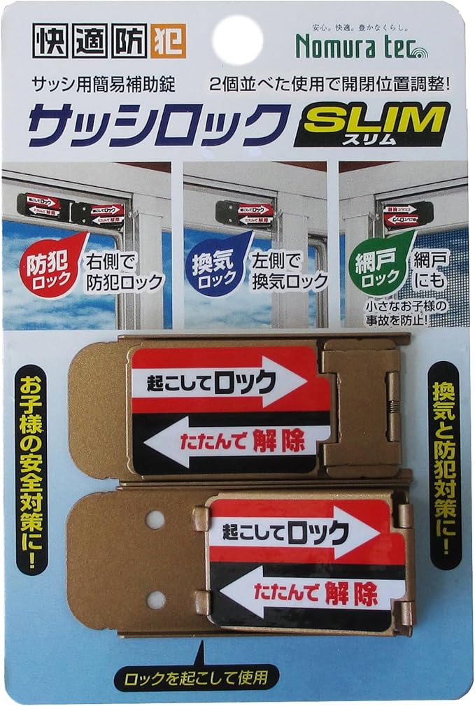 ノムラテック 窓周りの防犯グッズ ブロンズ 横5.8 縦2.5 厚み0.3cm サッシロック スリム N-1114 2個入り