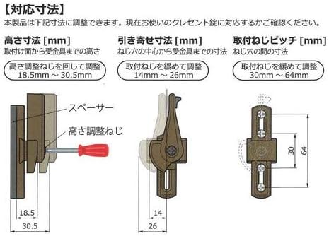 簡単調整!サッシにつけたまま3方向に寸法調整可能。施錠具合を確認しながら調整できて安心です。