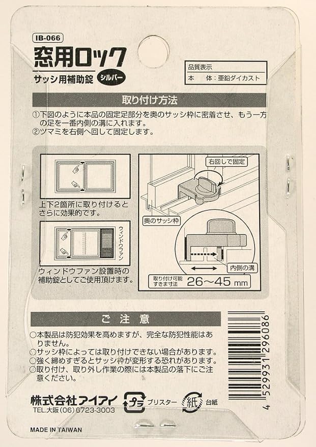 AIAI 窓用ロック シルバー IB-066