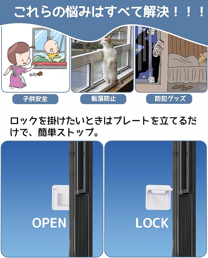 3個セット 窓ロック 窓ストッパー 指挟み防止、跡を残さず引き剥がせる、引き戸、戸当り、安全ロック、引出し取手、便座取手、穴あけ不要、窓止め、落下防止、盗難防止、ベビーガードレール、子供、赤ちゃん、ペット、多機能、取り付け簡単、スライドドアロック