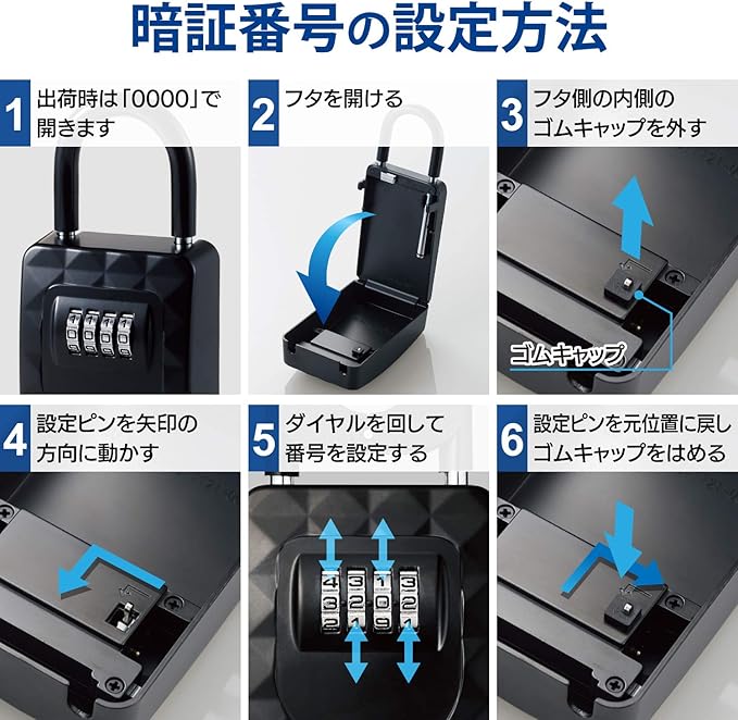 キー紛失の心配がない4桁のダイヤル式ロックで、任意の暗証番号に設定することができます。
