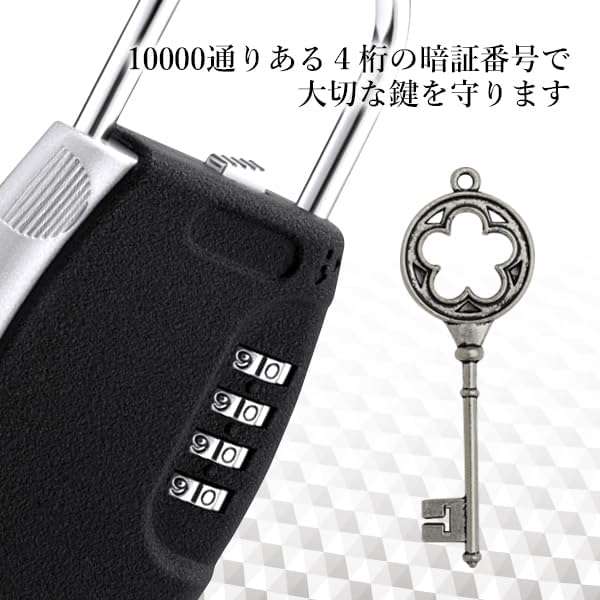 【商品説明】 大事なカギなどを守る! 4桁の相性番号で安心。 様々な用途で大活躍! キーボックス自体がU字ロックなので店舗や倉庫の入口施錠にも。 【商品仕様】 カラー ブラック